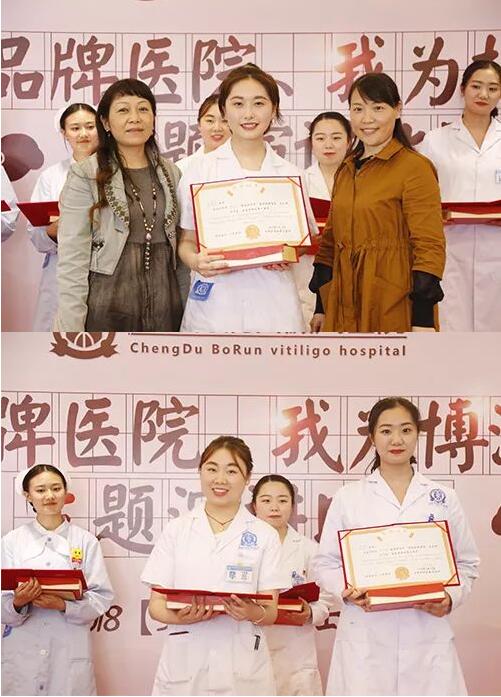 武侯竹园社区党委书记杨小勤、副书记曾艳、成都博润白癜风医院党支部书记、院长刘洪、护理部主任周光玉、门诊主任童学娅、护士长林雪春等亲临现场并担任评委。由医助组组长席娇主持。